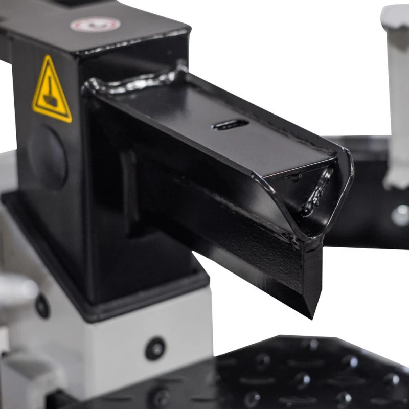 Daarnaast heeft de machine een 2 hands veiligheids bediening, handbescherming en een flexibel houtklem systeem. Door de beide zijgeleiders kan het hout gecentreerd onder de kloofbeitel worden gehouden. De kloofmachine is standaard voorzien van transportwielen.